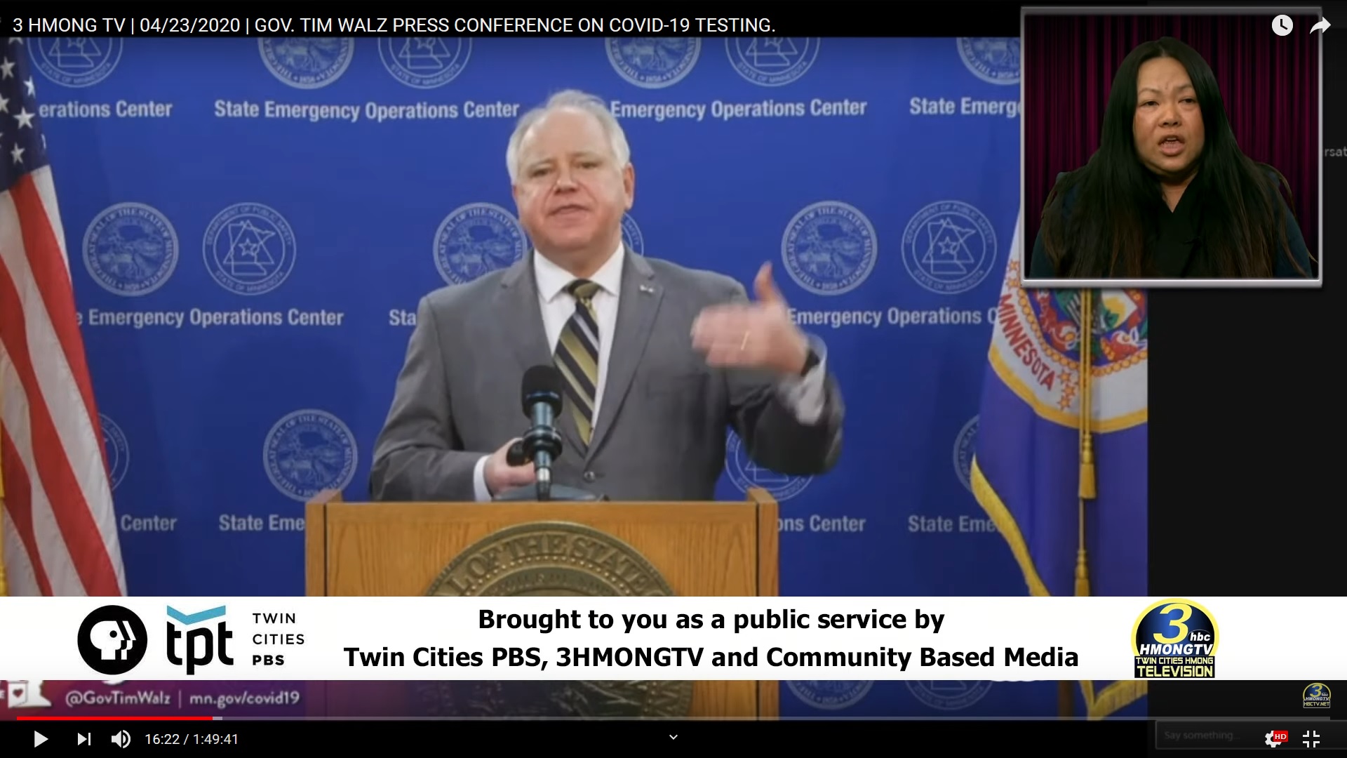 On Tuesday, November 10, 2020 at 2:00 PM Central Time, Governor Walz will announce some COVID-19 updates for Minnesotans given rising cases statewide. Twin Cities PBS and community & cultural media partners are providing the news conference in English, Spanish, Hmong and Somali languages REAL-TIME. Broadcasters and streamers are invited to carry the content LIVE (details below).